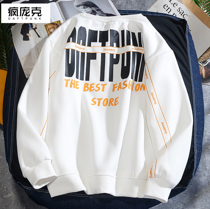 T恤青年复古学生情侣上衣体恤 潮男宽松薄款 春秋新装 英文印花长袖