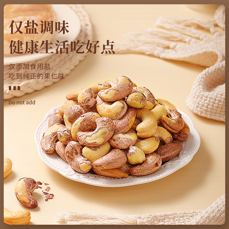 新货带皮大腰果仁500g紫皮原味孕妇坚果干果零食年货散装 整箱5斤