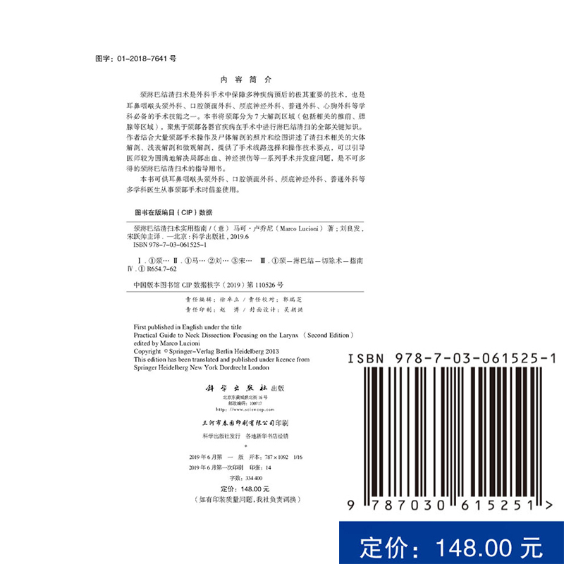 原书第2版 科学出版 社 现货 马可·卢乔尼 中文翻译版 意 9787030615251 颈淋巴结清扫术实用指南
