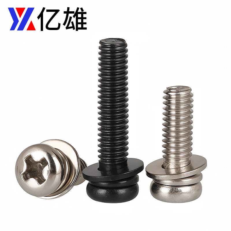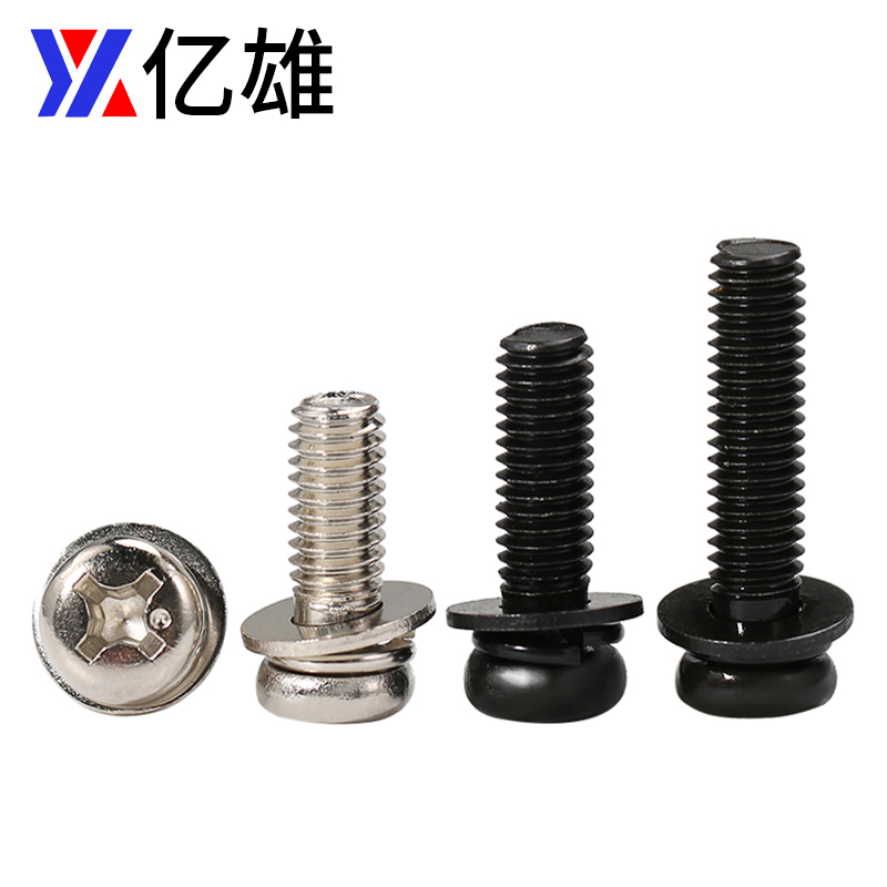 铁镀镍彩锌色十字圆头三组合螺丝钉盘头带平垫弹垫介螺栓M3M4M5M6