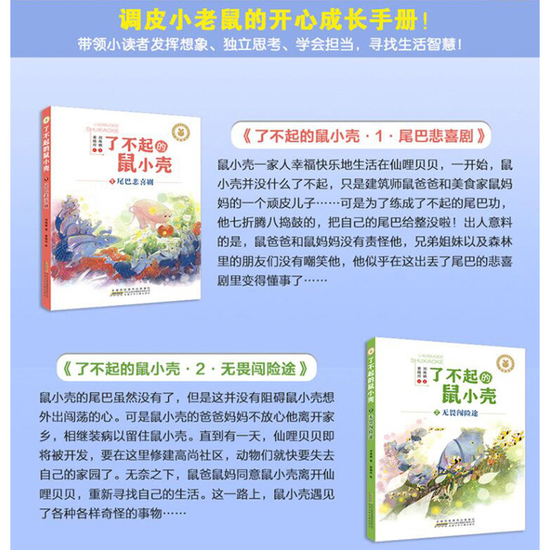 14岁四五六年级小学生课外阅读 了不起 校园文学书 鼠小壳全套3册刘海栖著彩绘非注音尾巴悲喜剧无畏闯险途回家总动员11