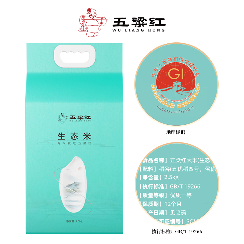 五梁红正宗五常大米2.5kg原粮稻花香2号25年新米生态东北大米5斤