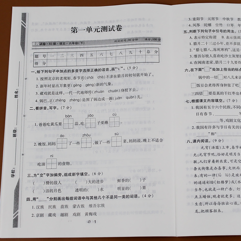 8六年级下册同步训练全套人教版 测试卷子题期中期末冲刺100分 语文黄黄冈课课练同步到课时随堂天天练课堂同步练习册课时作业附单元