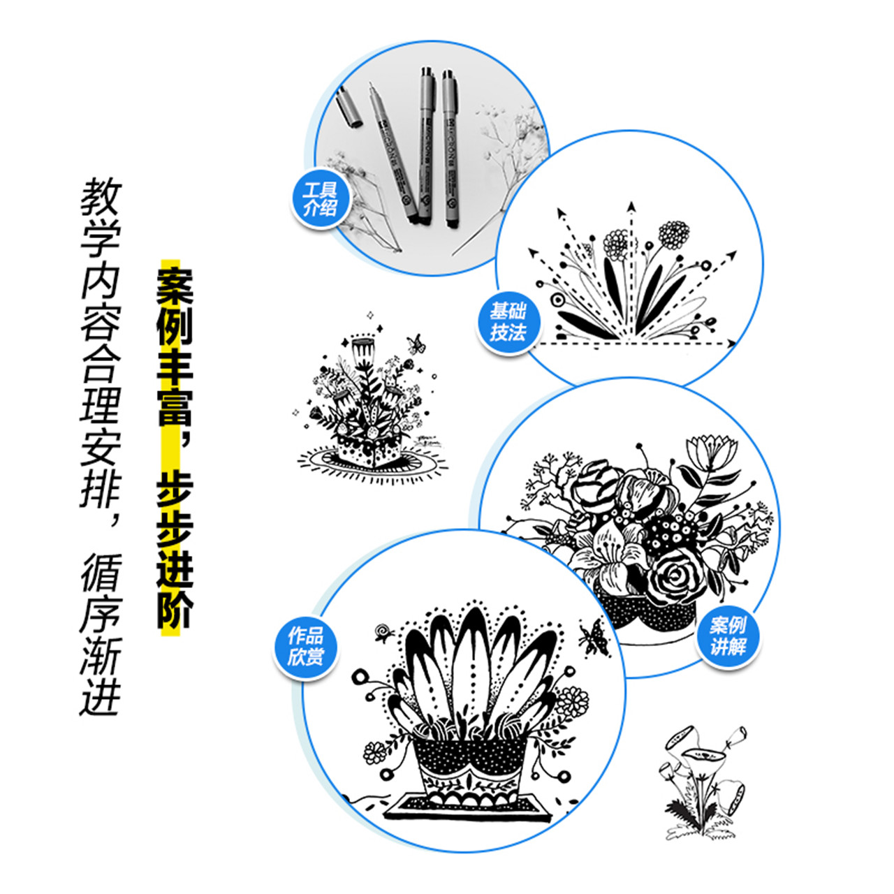 饰画彩色黑白图案设计艺术临摹绘画技法素描教程自学书籍线语集唯美线稿插画书 基础入门教程装 黑白灰装 饰画入门与创作技法教程
