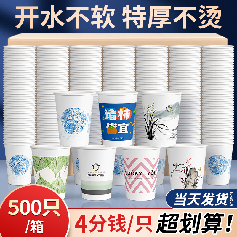 纸杯一次性水杯家用加厚纸杯子整箱批1000只装 办公商用定制印logo