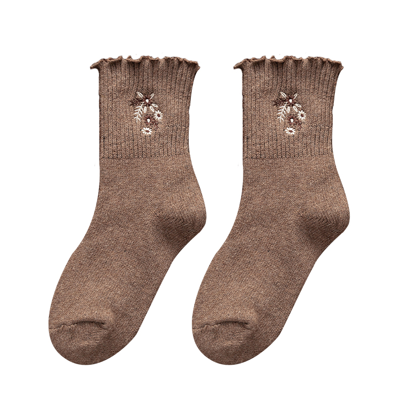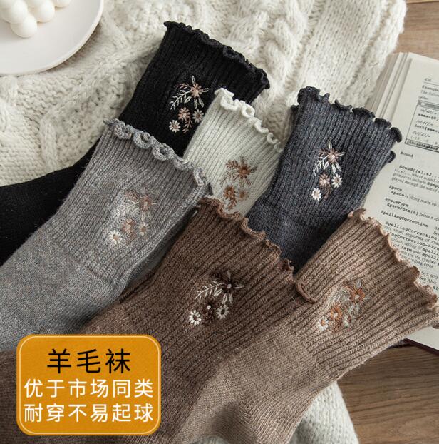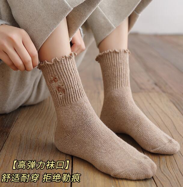 秋冬木耳边中筒堆堆袜子女ins可爱风韩式 潮流外穿搭配马丁靴袜子