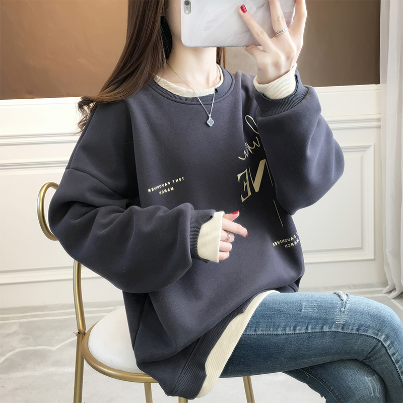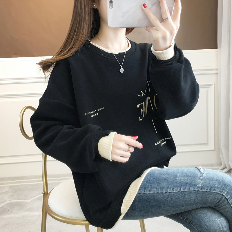 外套潮 宽松百搭学生ins假两件上衣初秋薄款 早秋装 卫衣女春秋韩版