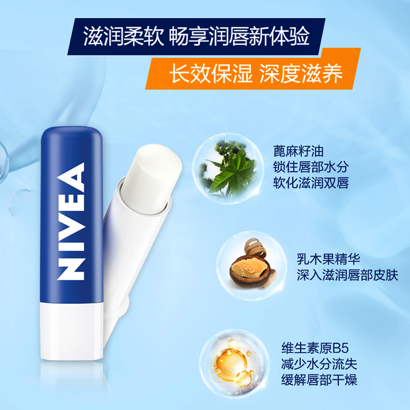 nivea妮维雅润唇膏补水保湿 滋润防干燥口红打底唇油男女官方正品