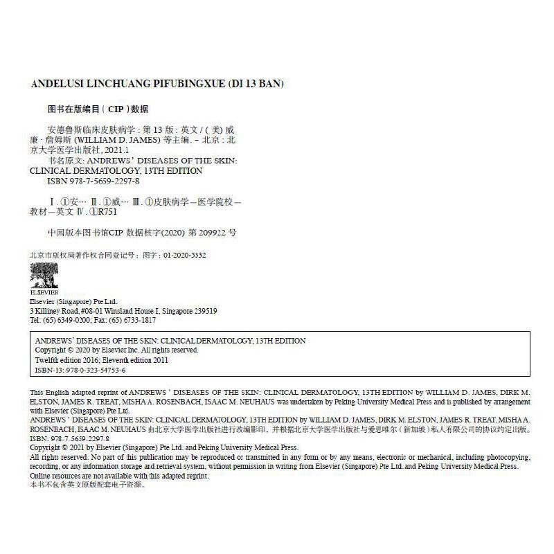 影印系列 安德鲁斯临床皮肤病学 医学教材改编 国外经典 3版