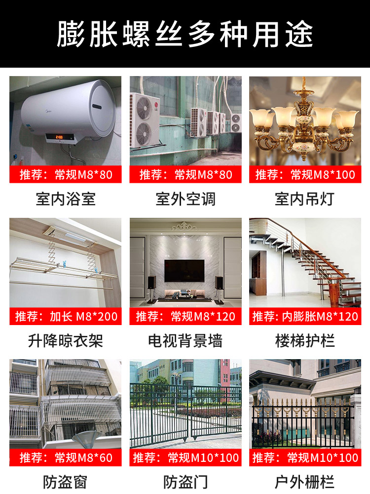 国标304不锈钢膨胀螺丝内膨胀内爆外六角内爆炸胀栓螺栓M6M8M10mm