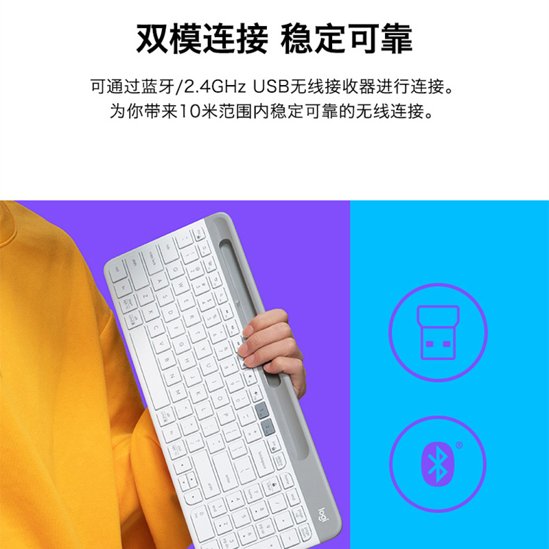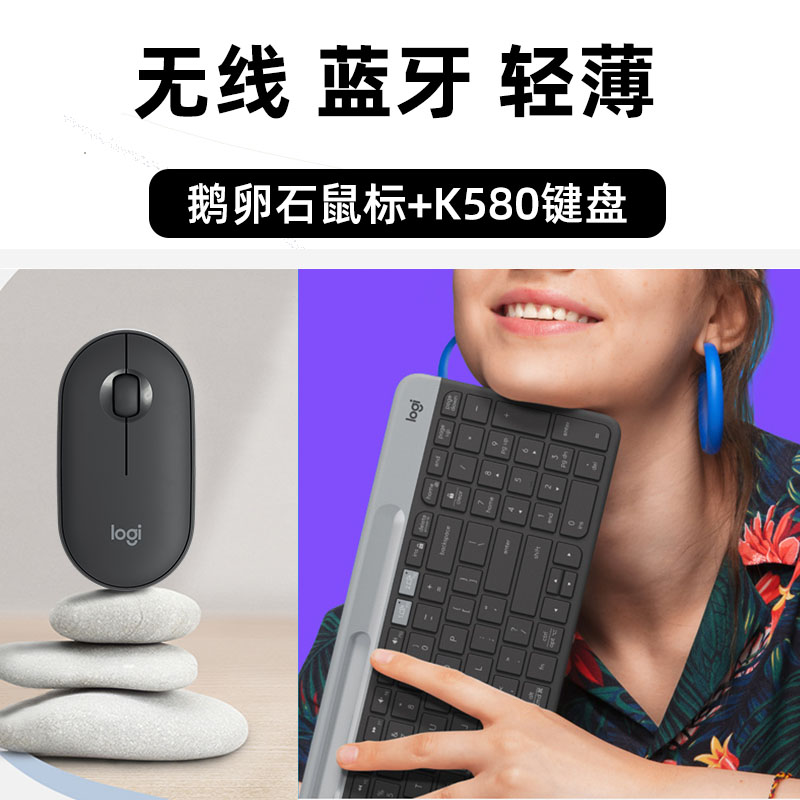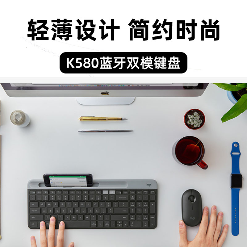 罗技K580无线蓝牙键盘办公便携超薄静音mac电脑ipad黑白粉