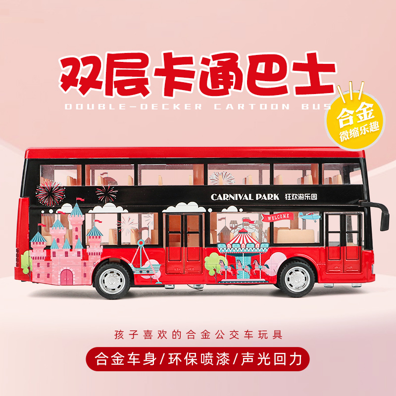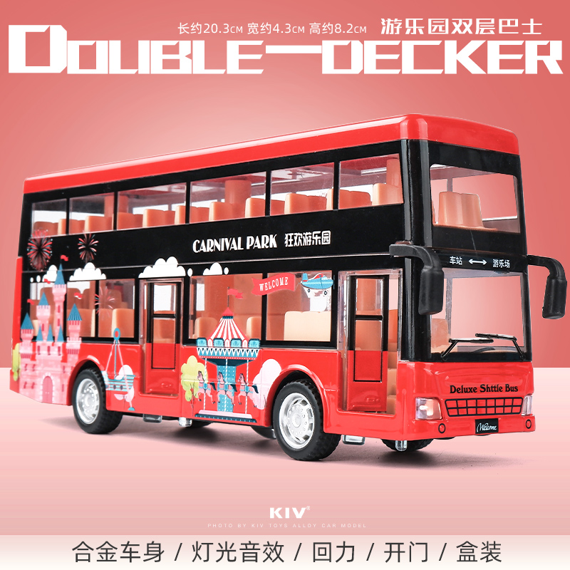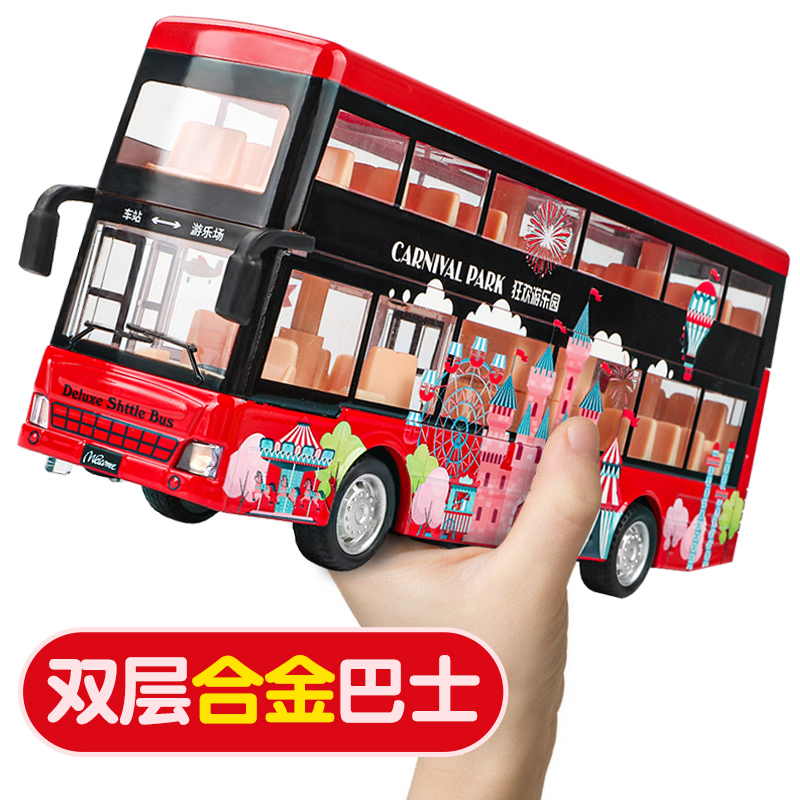 卡威男孩合金双层巴士公交车玩具仿真儿童玩具车巴车公共汽车模型