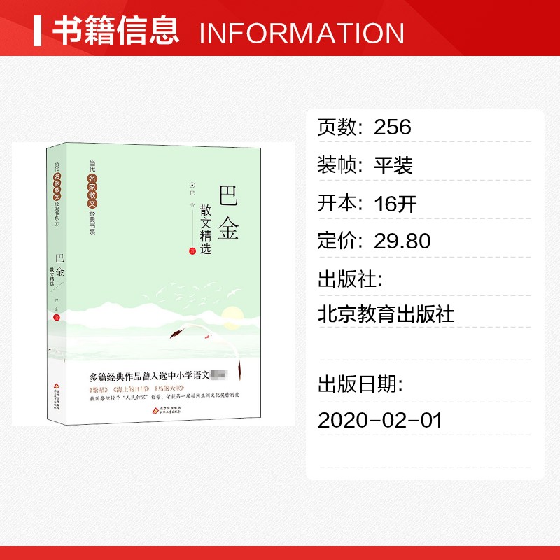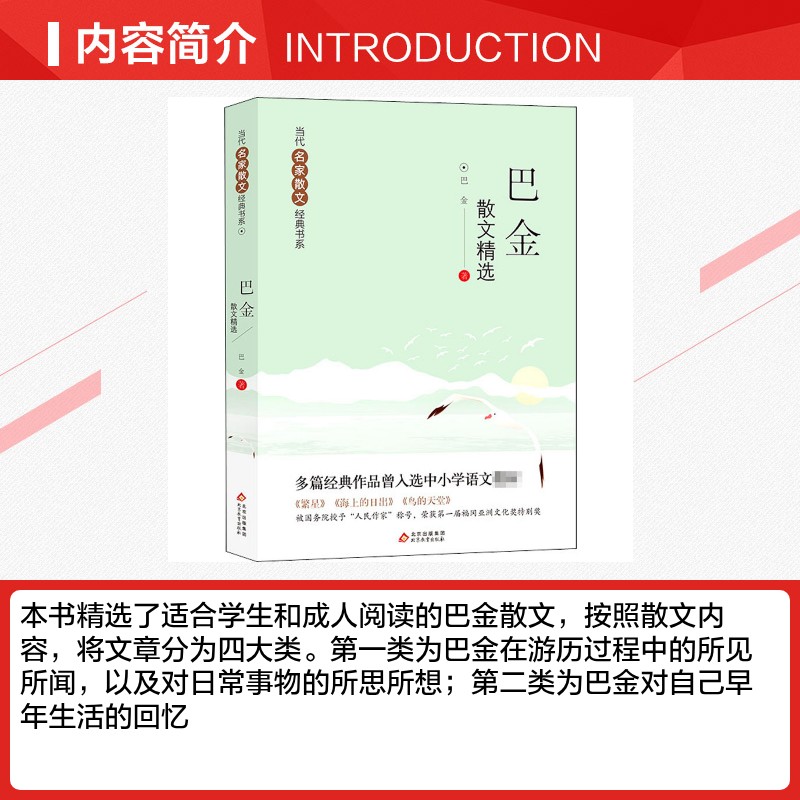 中国近代随笔少儿 著 新华书店正版 图书籍 社 巴金散文精选 北京教育出版 巴金