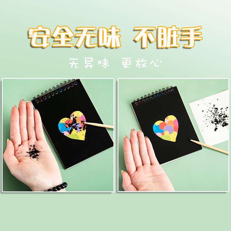儿童炫彩刮画纸学生迷你小号便携刮画本涂鸦本刮刮本黑色刮画笔和有图案小学生彩画画本绘画纸创意小号刮画本