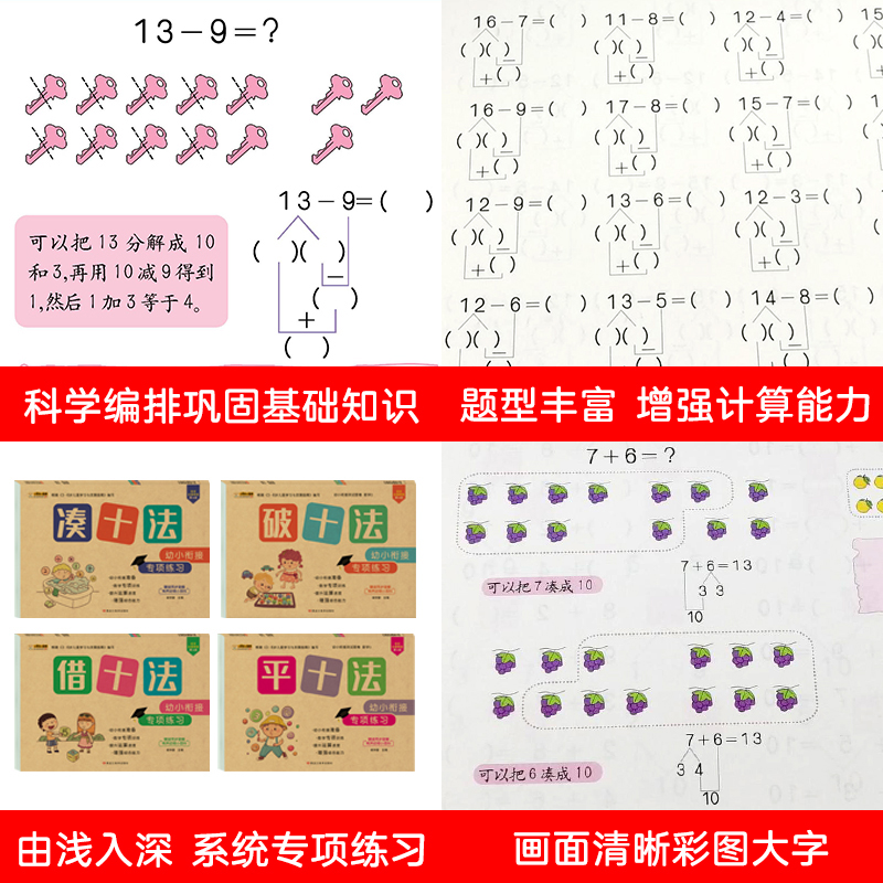 6岁 凑十法借十法平十法破十法 凑十法借十法幼小衔接一日一练数学教材全套数学思维训练幼儿园数学练习册入小学算术儿童一年级4