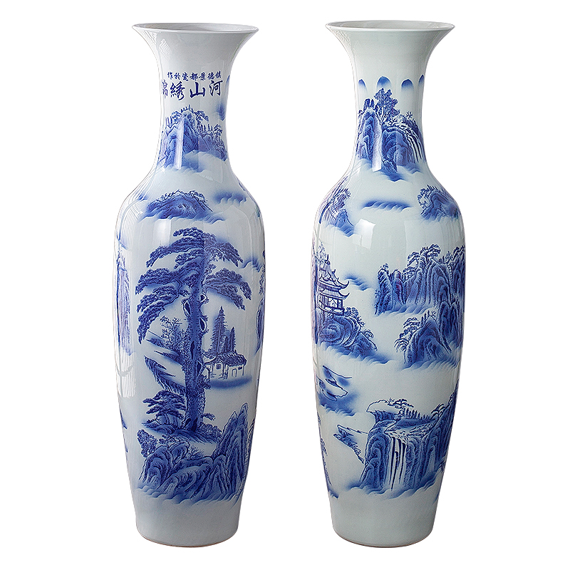 景德镇陶瓷大花瓶客厅摆件落地酒店宾馆开业礼品迎客松现代装 饰品