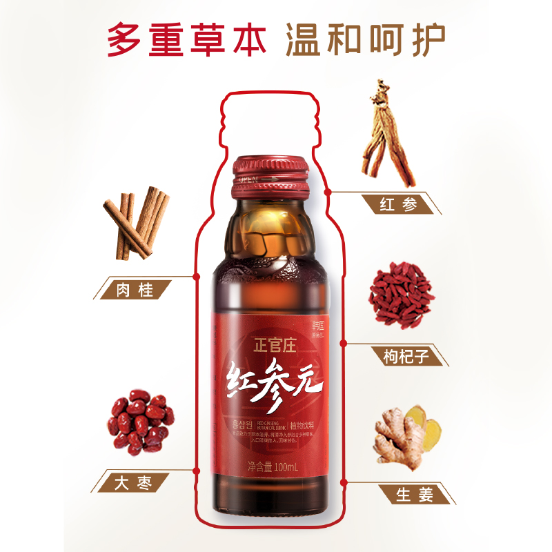 韩国进口正官庄高丽参元 40瓶六味草本 红参液饮品100ml