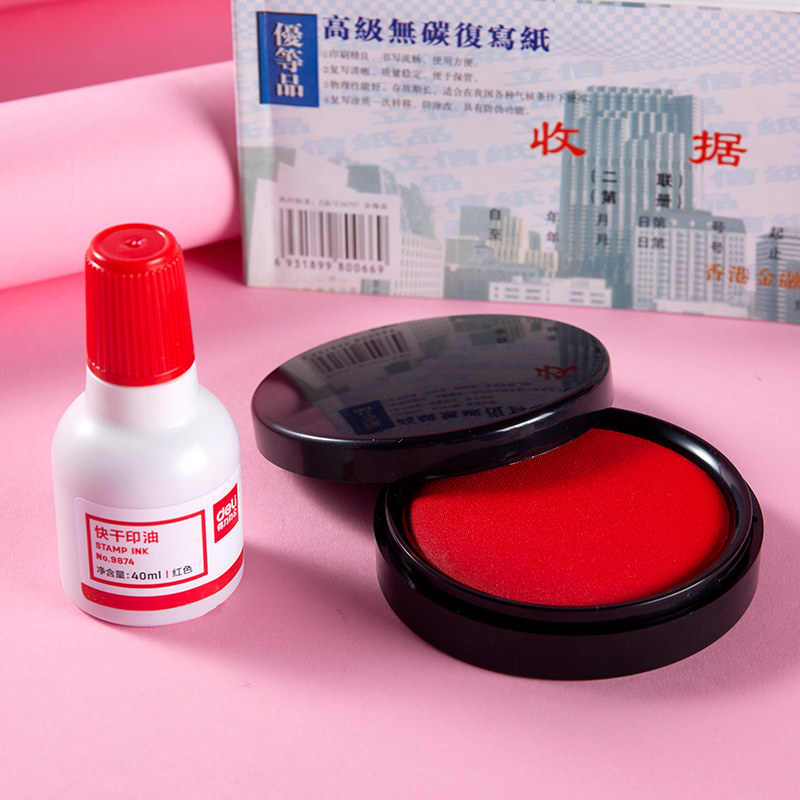 9870手账外出携带不漏油 9869 得力印台印泥办公用品快干印台财务便携式 秒干印台红色圆形速干印油9868