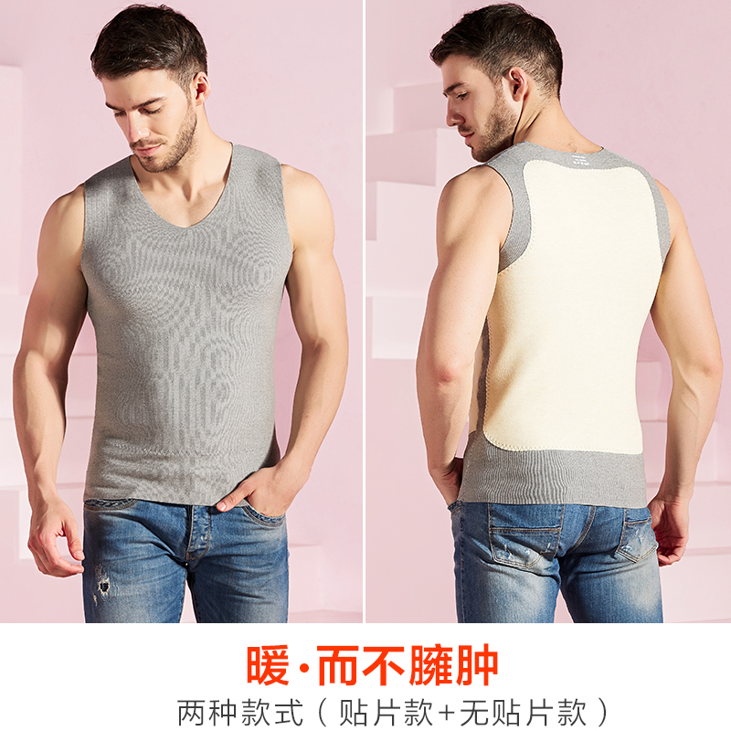 含羊绒蚕丝贴片发热秋上衣冬季 恒源祥无痕保暖背心男士 内穿打底衫