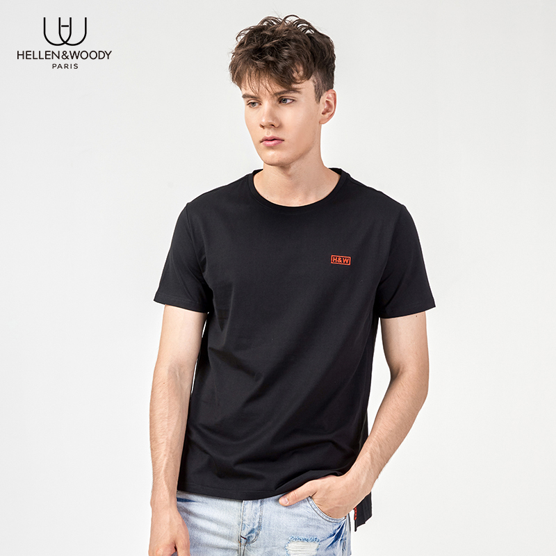 印花黑色圆领打底衫 T恤男2023春夏新款 男潮牌潮流体恤 短袖 HW男装
