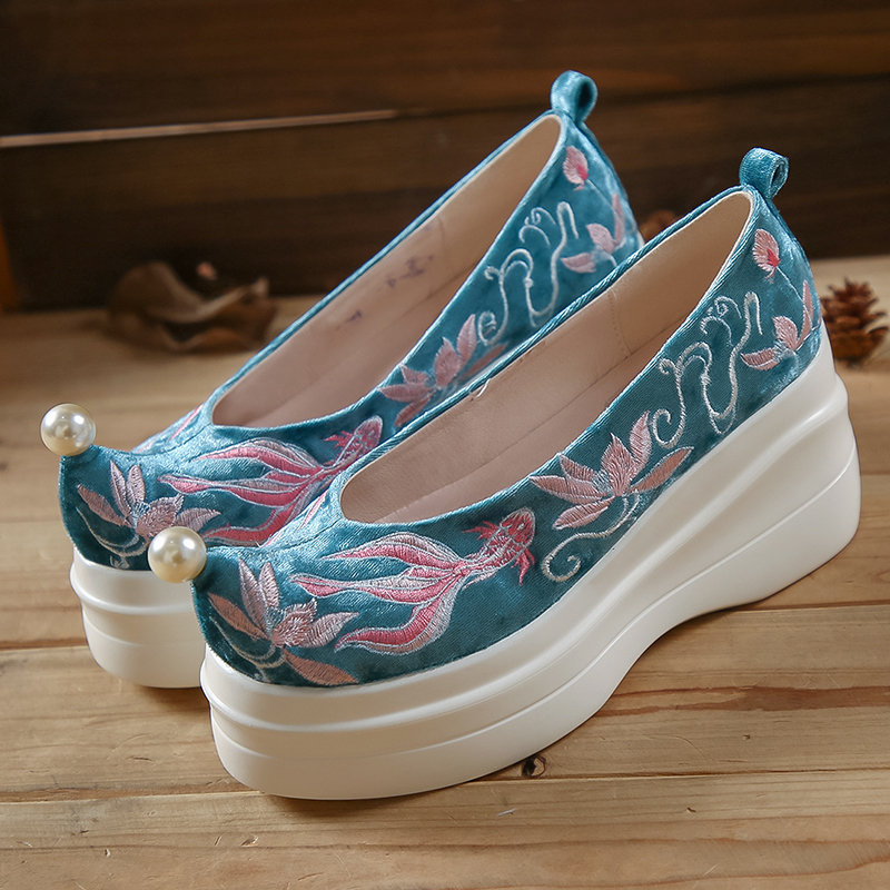 清仓 超高跟厚底松糕底绣花鞋 子女汉服搭配鞋 天赐绣原创古风鞋