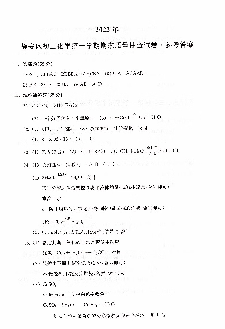 文化课强化训练2021 2021 上海中考化学一模卷 领先一步 2024四年合订本上海市各区初三初中九年级期末抽查模拟试卷仅答案 2024年版