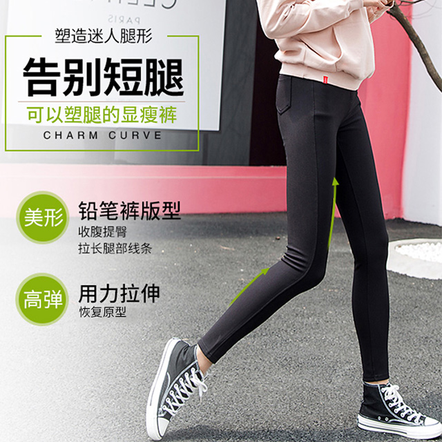 舒适透气外穿高腰显瘦黑色打底裤 婷美秋冬乳木果润肤裤 修身
