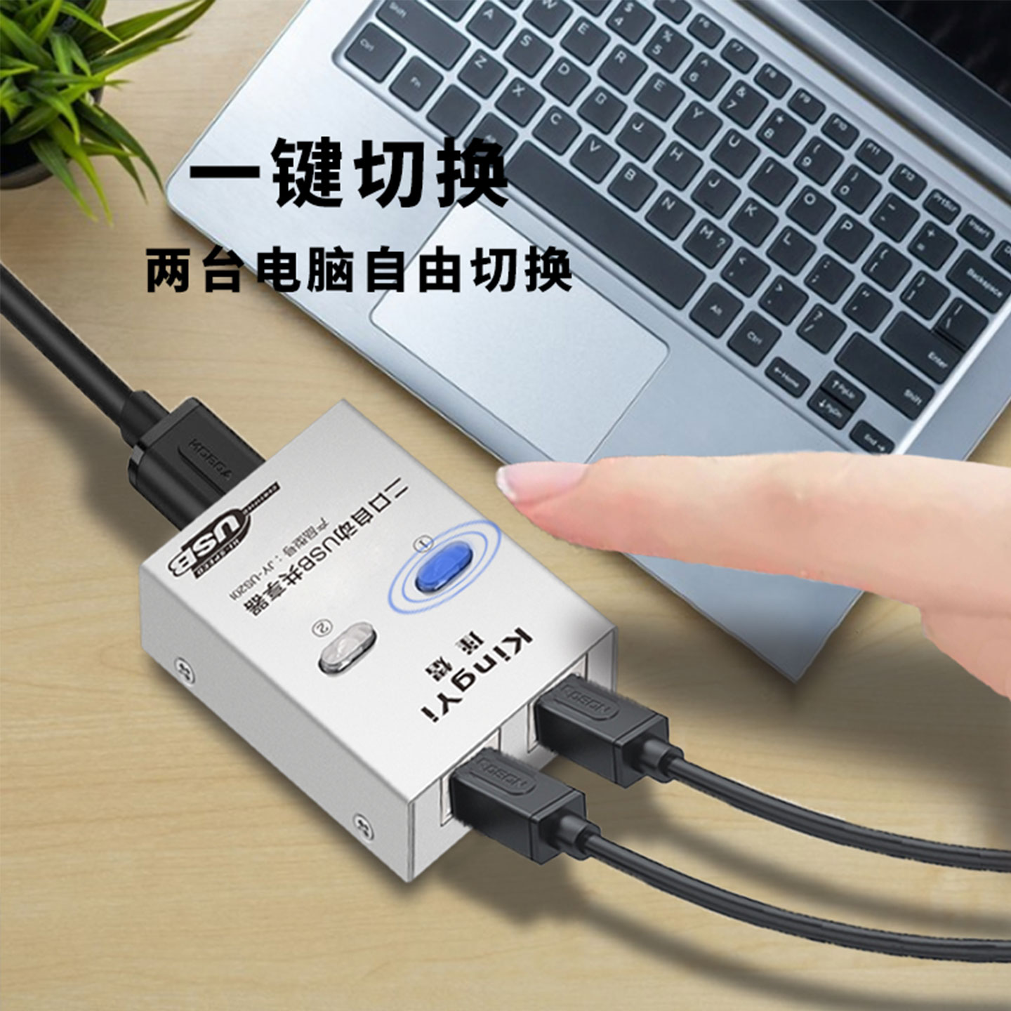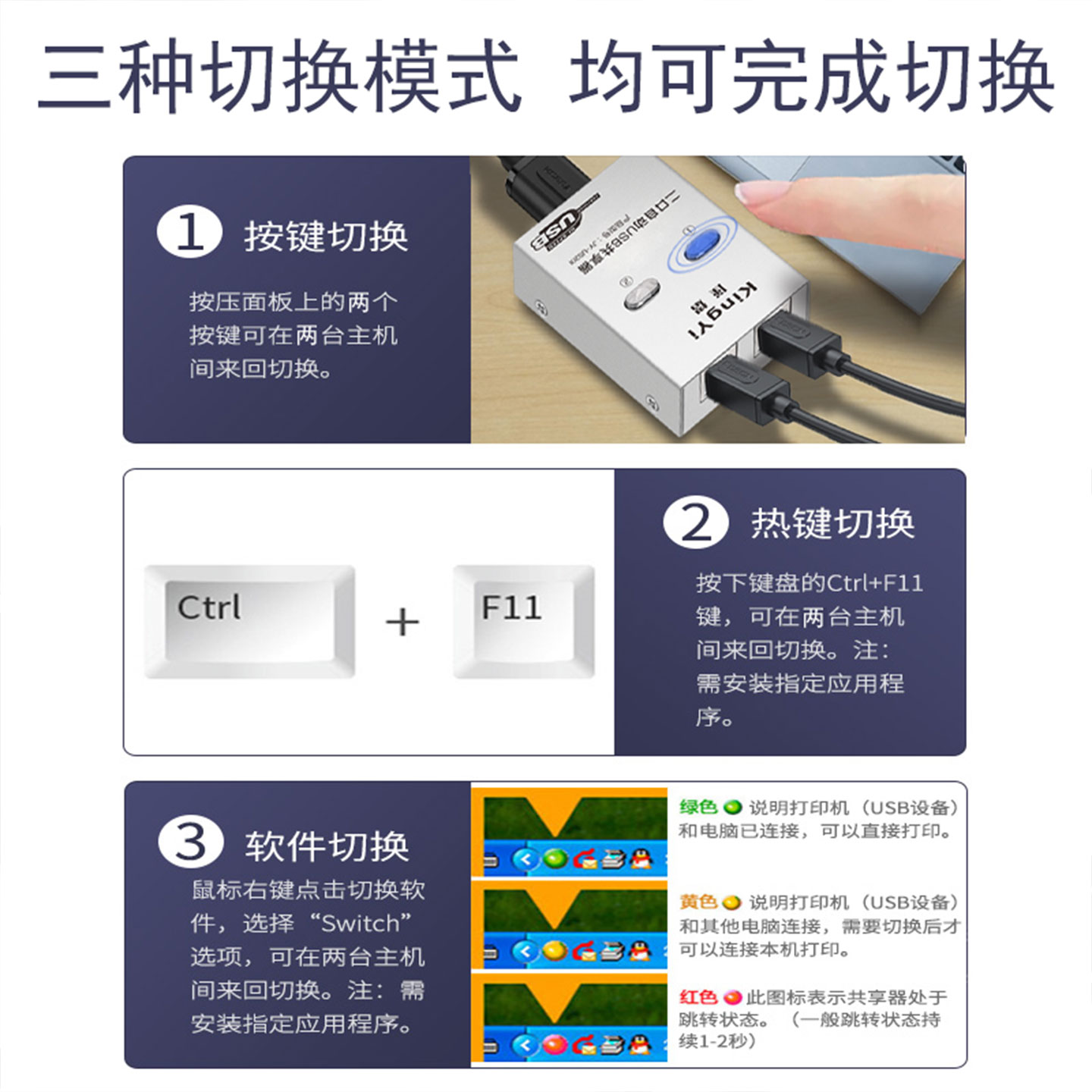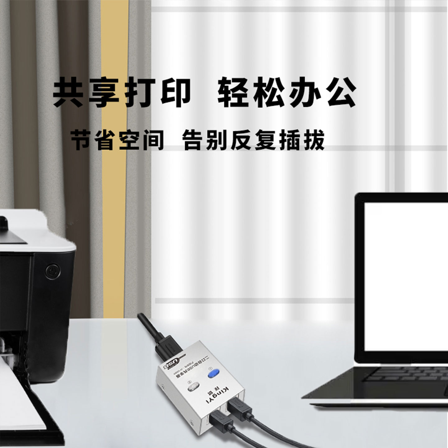 usb打印机共享器一拖二自动切换器2口数据线一进两出分线器2台电脑共用1台打印机U盘2进一出分线器1分2分支器