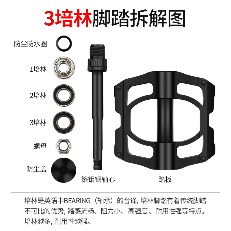 三培林自行车脚踏板铝合金山地车通用轴承脚蹬子公路单车配件大全