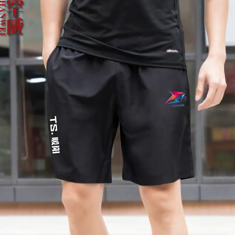 夏 子男女黑色5五分裤 王者游戏TS战队队服kpl夺冠纪念同款 速干短裤