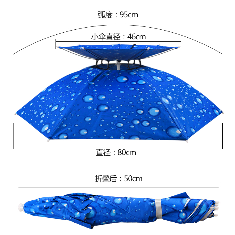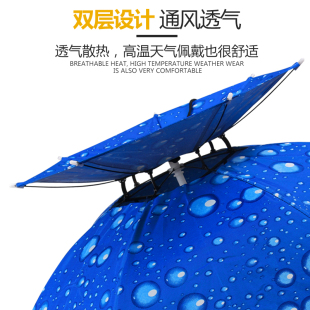 双层防风防雨钓鱼伞帽头戴式 雨伞防晒折叠头顶雨伞帽户外遮阳垂钓