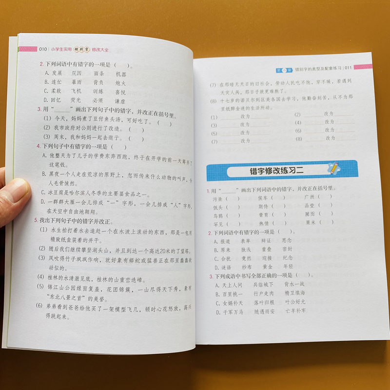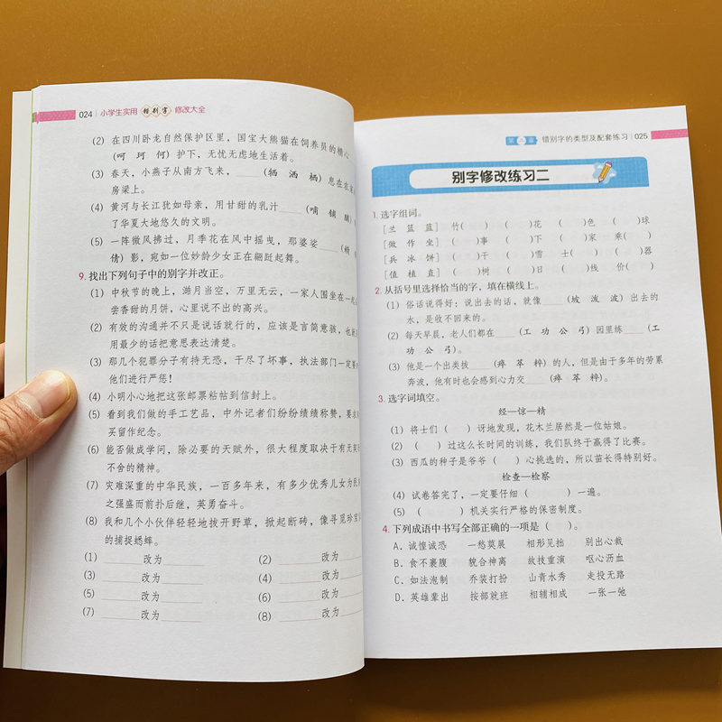 小学生实用错别字修改大全小学生语文句子专项训练题练习册三四五六年级上下册通用标点句式 转换高效纠错错别字关联词造句子人教版