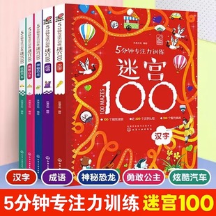 5分钟专注力训练迷宫100全5册汉字成语儿童迷宫益智书专注力训练