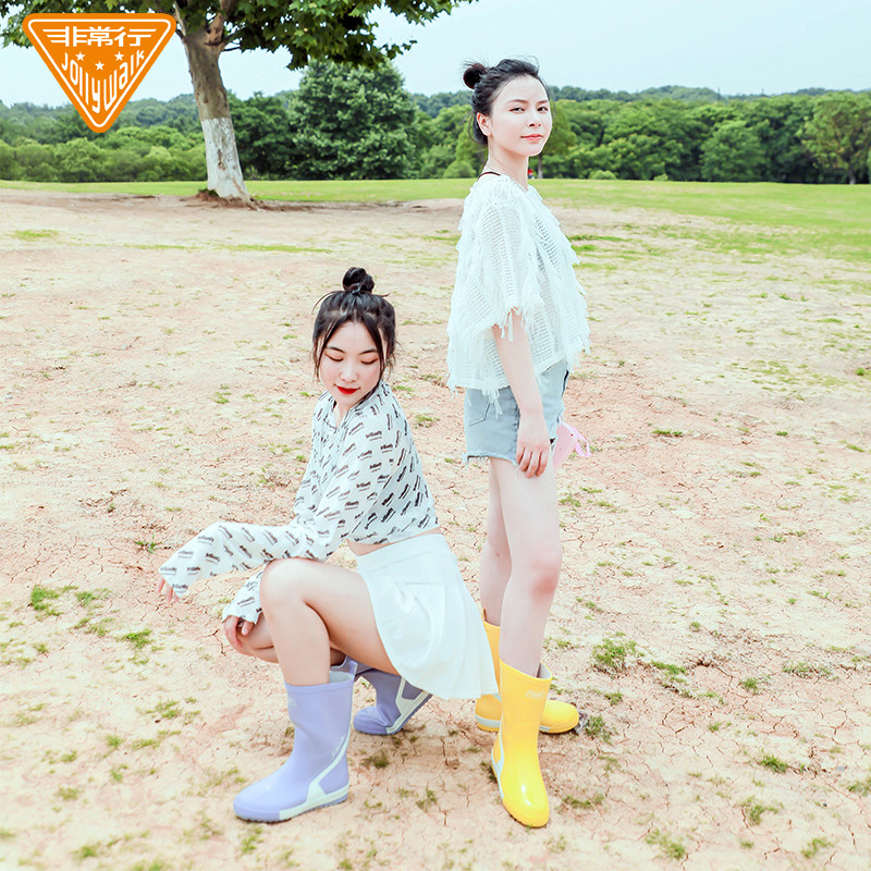 橡胶软底耐磨水鞋 非常行雨鞋 外穿雨靴女防水防滑秋季 中筒时尚 女款
