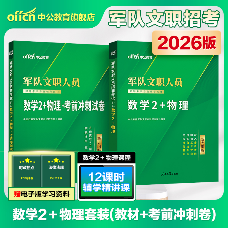 中公2026军队文职人员招聘考试用书新大纲版 物理冲刺试卷部队文职干部一本通教材真题题库数学二和物理加理工类专业科目资料 数学2