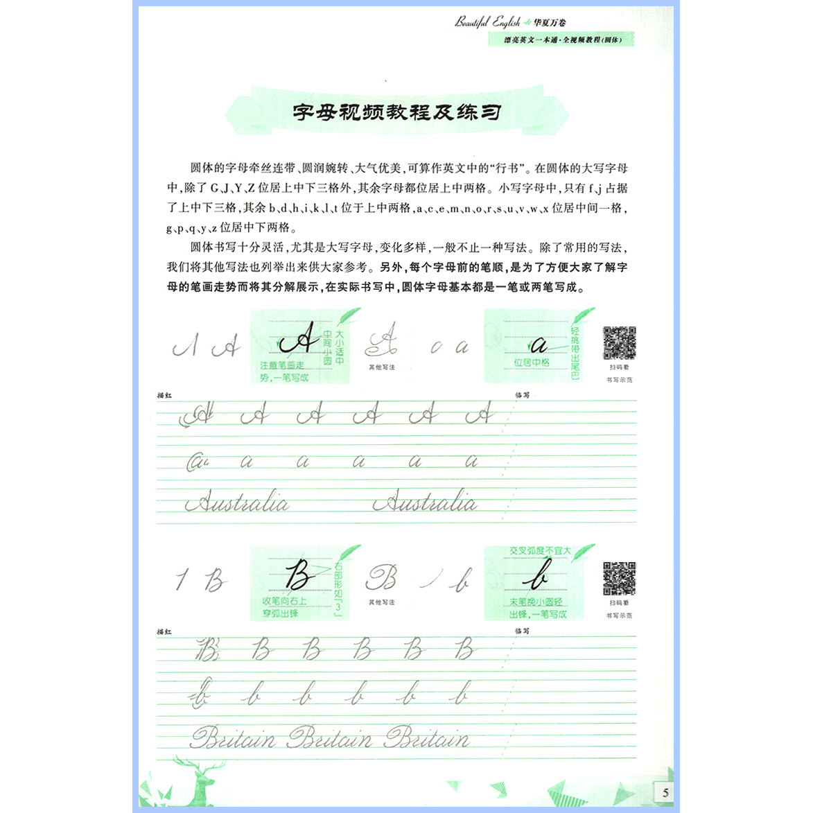 华夏万卷 于佩安花体英语字帖全视频教程英语字帖成人高中大学生英文书法字贴钢笔临摹速成英语高分写作字帖 圆体漂亮英文一本通