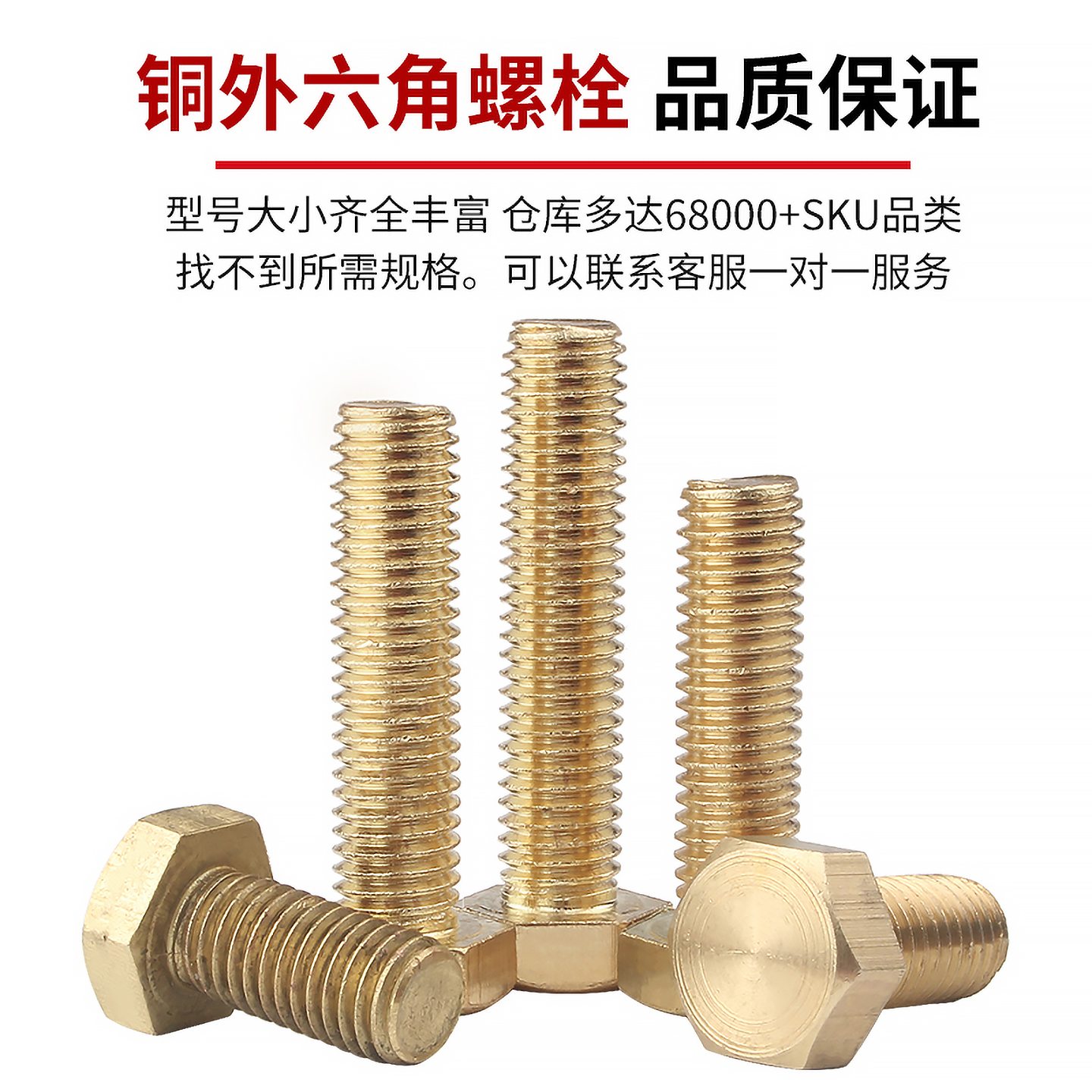 铜外六角螺丝 黄铜螺栓螺杆机牙螺钉铜制螺丝钉螺栓国标M5M6M8M10