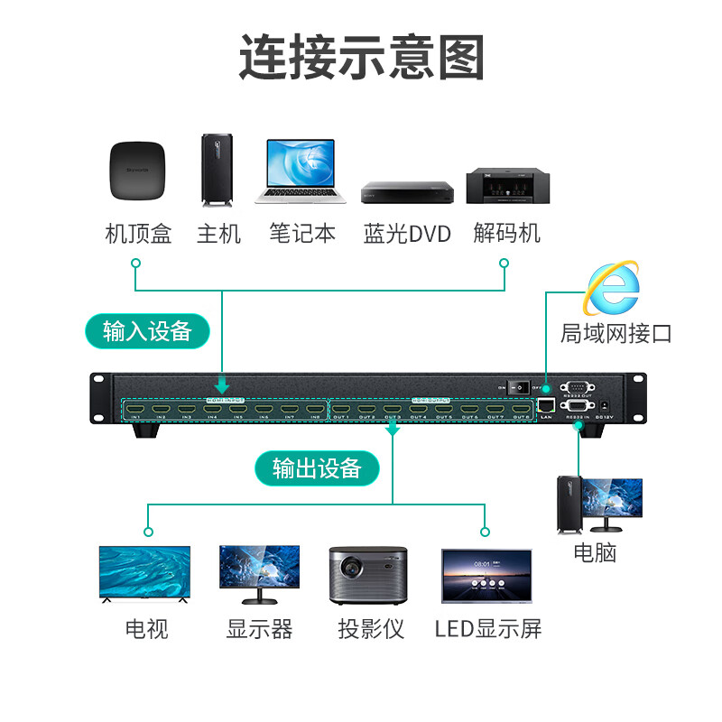 音视频会议主机监控电视大屏显示器投影仪拼接屏 HDMI矩阵切换器8进8出视频会议服务器 迈拓维矩MT HD0808