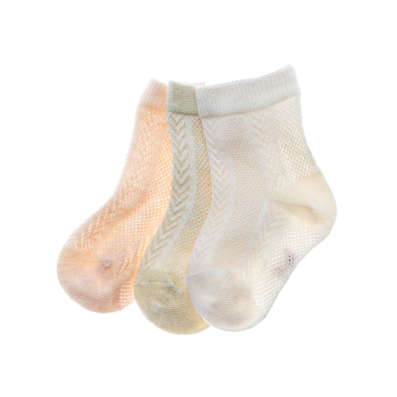 3双装 天然彩棉婴儿袜子薄款 1岁网眼短袜 新生儿松口袜宝宝0 夏季