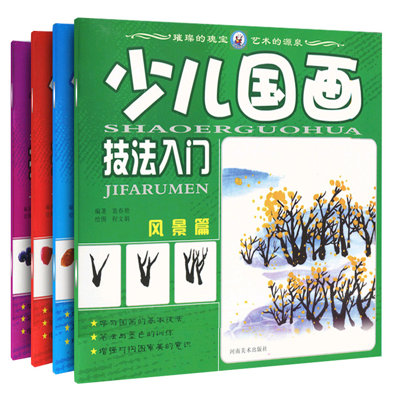 少儿国画技法入门动物花鸟鱼虫果蔬风景篇培训班教材幼儿园特色课程美术课本3 6岁儿童工笔画画小学生零基础初学者绘画书籍全套4册