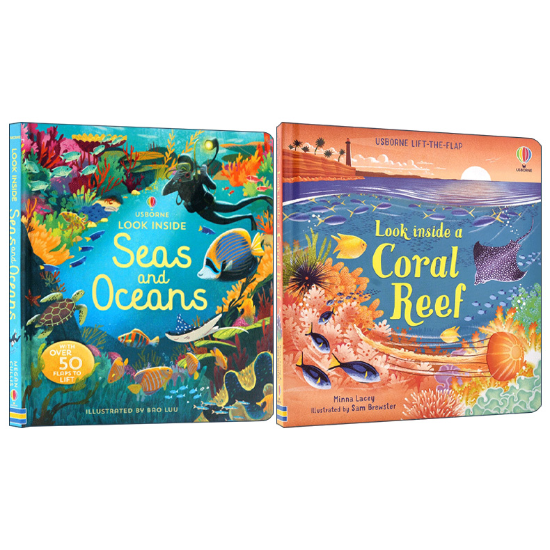 海洋 书籍 Look 进口英语原版 英文版 纸板翻翻书 揭密珊瑚礁 看里面之海洋系列2册 Inside Usborne 英文原版