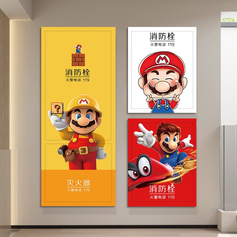 消防栓箱标识可爱卡通贴纸灭火器柜水井门遮挡高级美化装 饰海报图