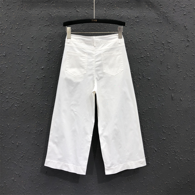 高腰显瘦牛仔直筒裤 韩版 百搭时尚 欧货女夏新款 气质休闲七分阔腿裤