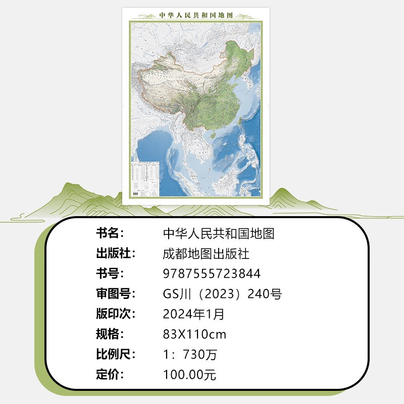 2024年新版 山川河流地形地貌 中华人民共和国地图 高清浮雕地图 中小学生地理学习工具 竖版