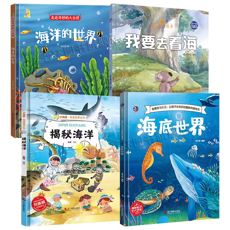 彩绘本故事书 揭秘海洋 8岁儿童大自然科普知识关于海洋 世界幼儿园小中大班2 海洋 我要去看海 海底世界 海洋绘本4册正版