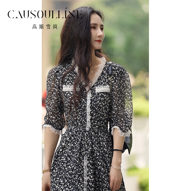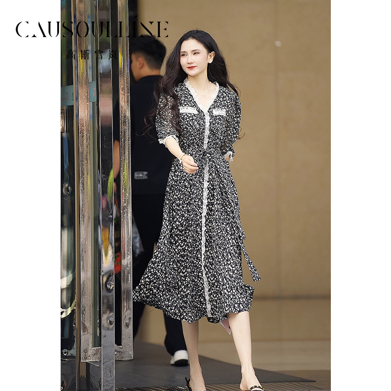 简约小个子黑裙 女装 秋水伊人文艺气质假两件连衣裙2025年冬季 新款