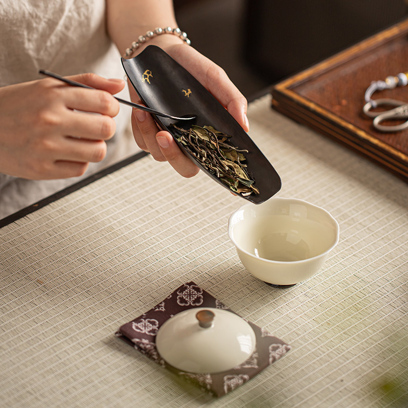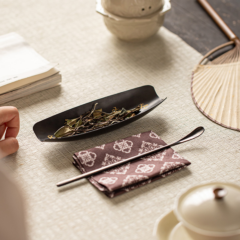 清山胡同禅意老铁大漆茶则茶拨套装 茶具茶道配件手工茶荷茶勺 中式
