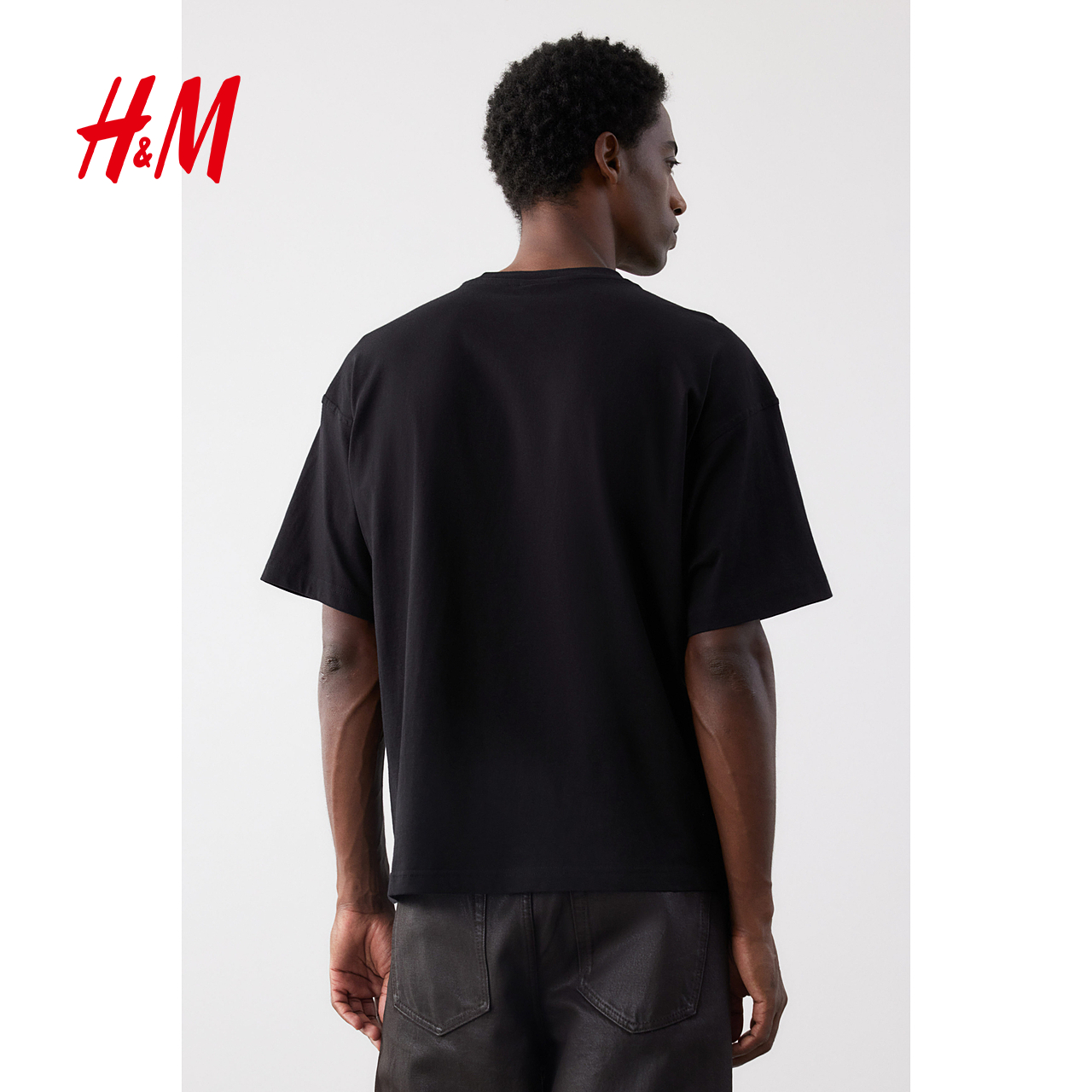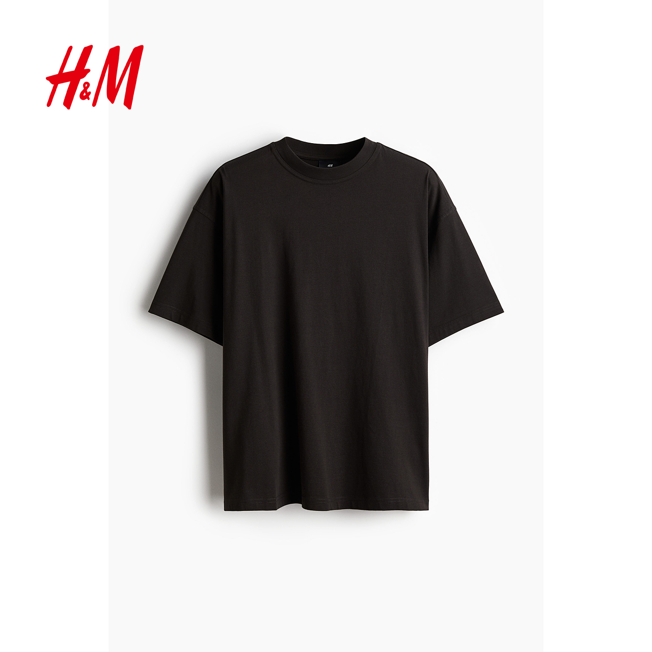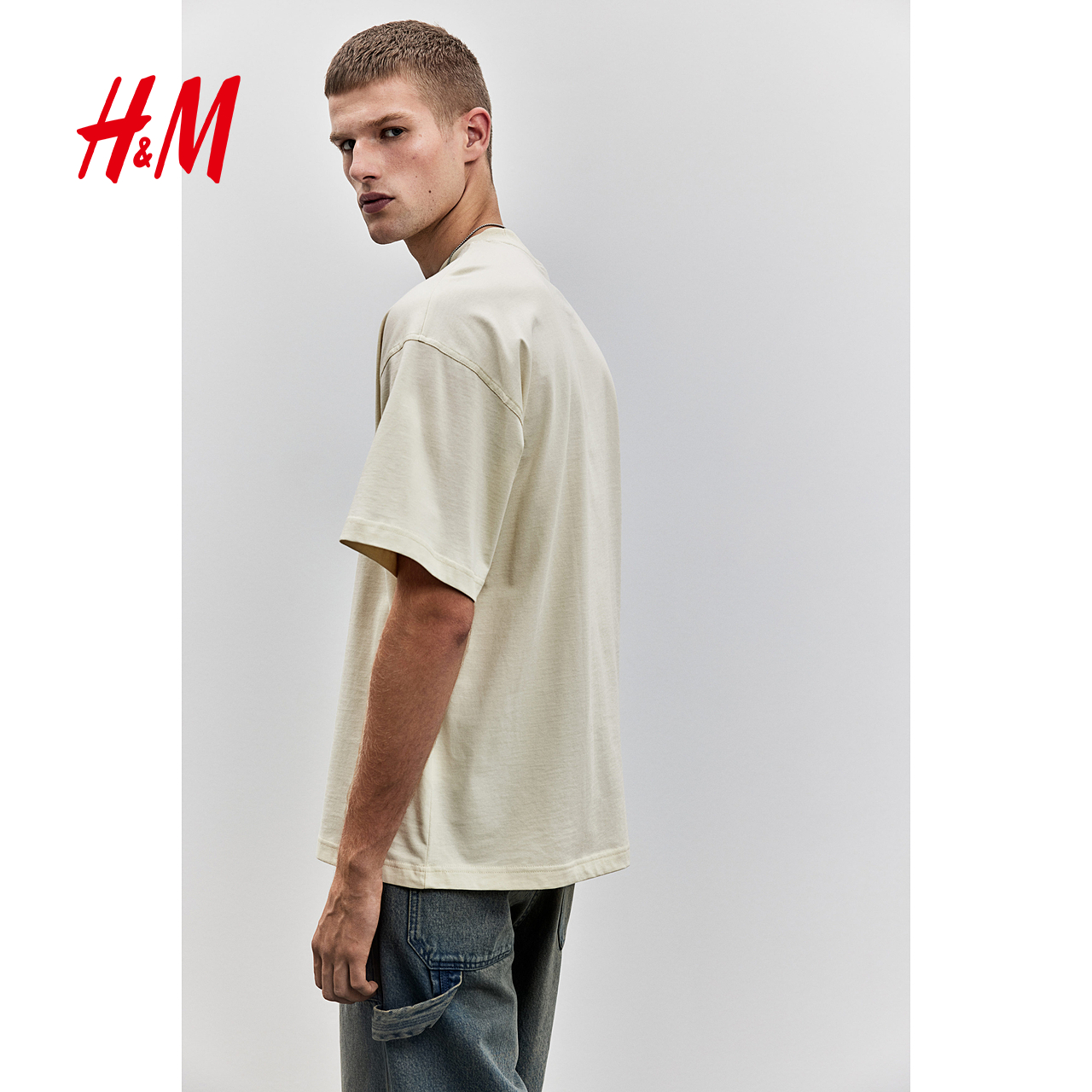 短袖 HM男装 柔软圆领宽松舒适休闲情侣装 T恤秋季 上衣1074658 女装