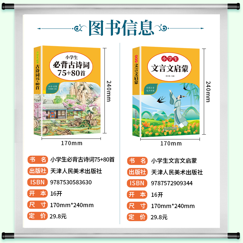 正版 中国古诗词大全语文鉴赏小学生必背文言文启蒙阅读与训练彩图注音版 小学生必背古诗词75十80首人教版 新版