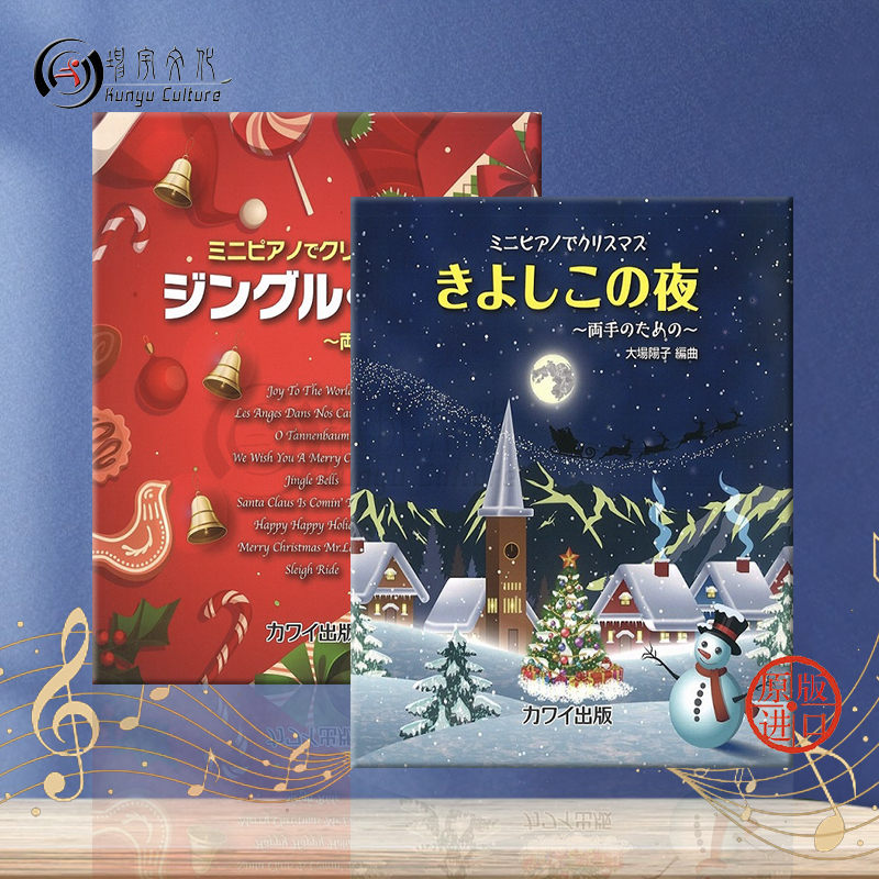 双手 尺寸17.8×20.6cm KWID71 平安夜 KWID72 乐谱书 铃儿响叮当 原版 用迷你钢琴演奏圣诞歌曲 全套共一至二册